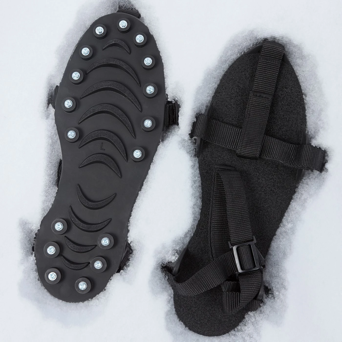 - Easy On/Off Design: This winter hiking accessory features a user-friendly hook-and-loop fastener system for easy attachment and removal, ensuring a snug and secure fit. You can use them with your favorite pair of shoes, ensuring you have reliable traction wherever you go.