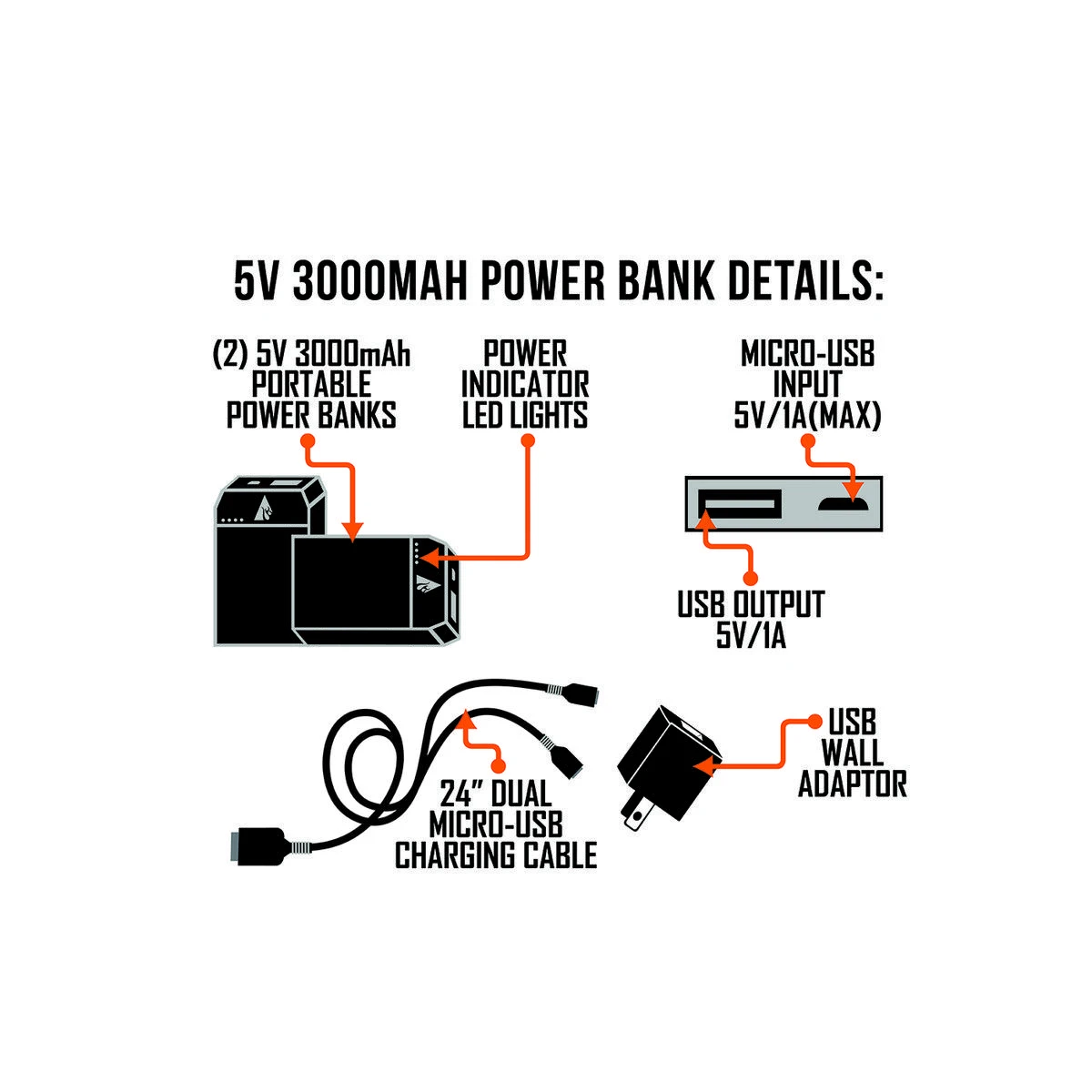 This is an extra USB charging kit for the 3000maH, 6000maH, and 10,000maH ActionHeat power banks.