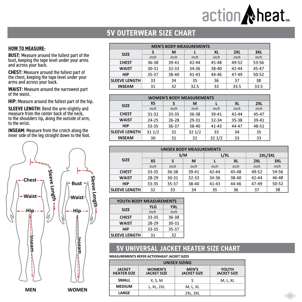 ActionHeat heated garments use FAR infrared heating and ActionWave heat reflective technology to deliver hours of heat and comfort. ActionHeat allows you to stay warm and enjoy outdoor winter activities longer than ever before.