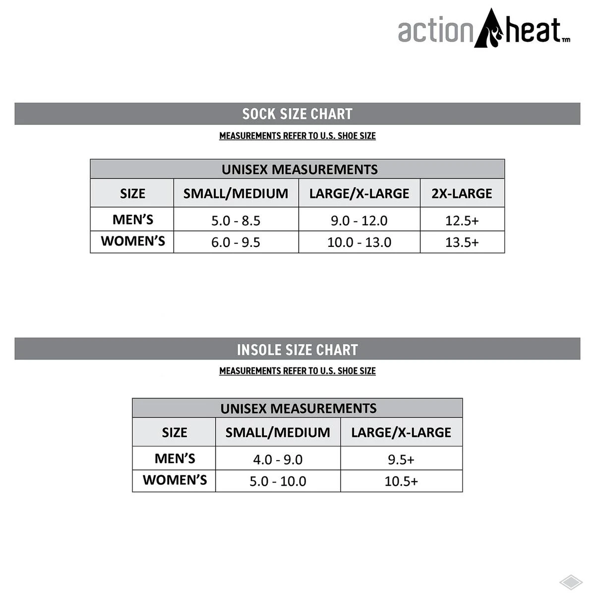 ActionHeat Insole Sizing: Cut-to-fit adjustable sizing with an easy guide.