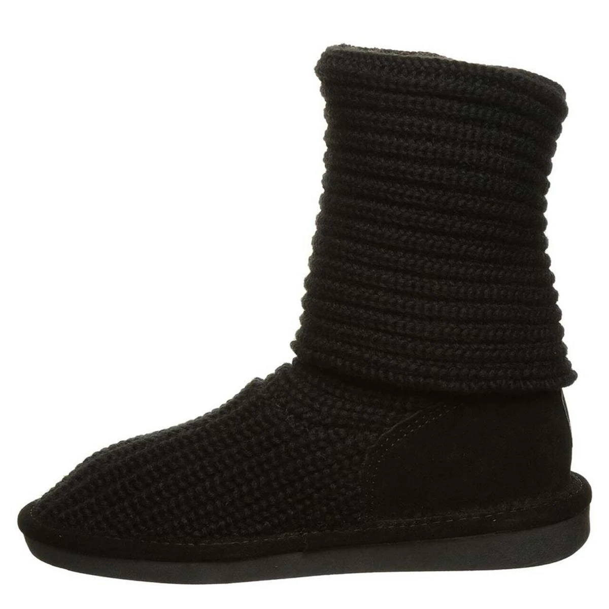 The Knit Tall Boot from Bearpaw is the epitome of cutting edge fashion craftsmanship and quality – you can wear these tall or folded down for a fun look. These unique, cozy boots utilize a knit upper for a warm snug fit with a rounded toe, a genuine sheepskin lining to wick away moisture for comfort. Bearpaw shoes and boots use the highest quality natural furs and genuine sheepskin.