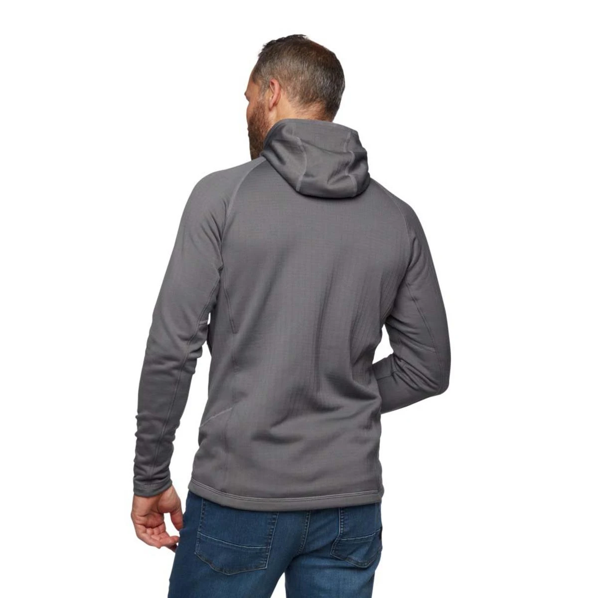 From summer rock routes in the Sierra to tedious ice leads in the heart of winter, the Black Diamond Factor Hoody delivers four-season, technical midlayer performance in a light, stretchy and quick-drying package. The hoody’s close-fitting, under-the helmet hood helps retain warmth on chilly approach pitches and lets you leave the beanie at home, while zippered hand and chest pockets secure small on-route essentials.