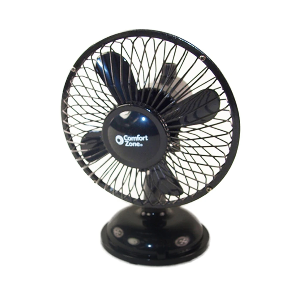 The Comfort Zone battery/ USB oscillating desk fan is perfect for the office! With an adjustable vertical tilt and oscillation, set it up to be right where you want it on your desk! Requires the use of 4 AA batteries or an USB power cord. USB power cord included.