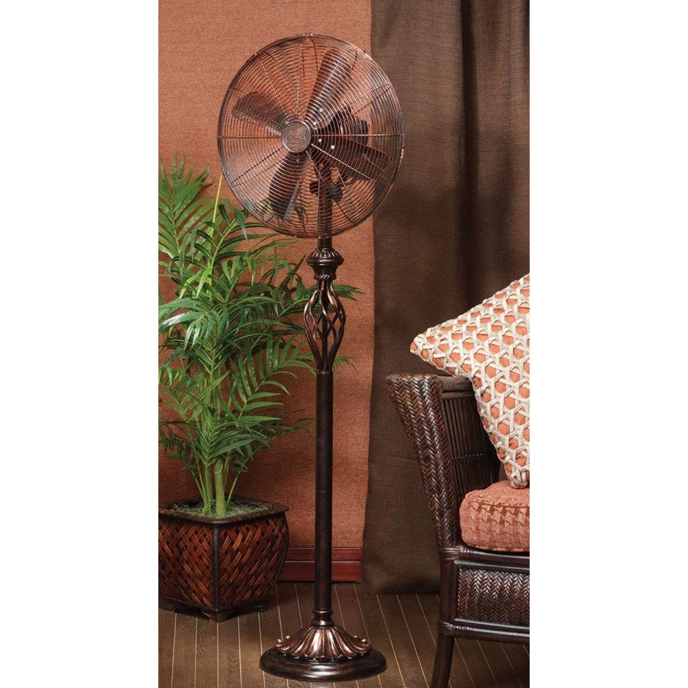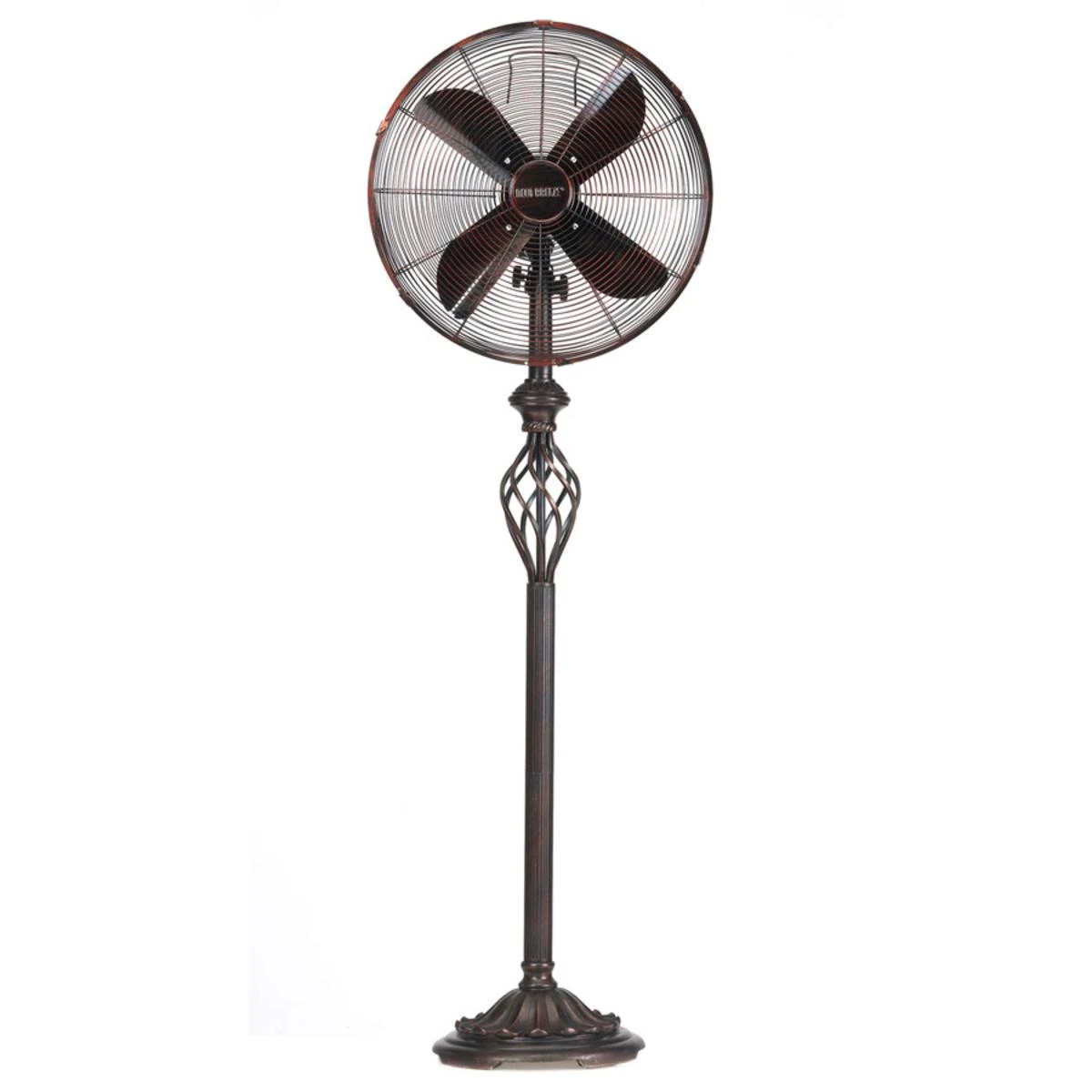 Deco Breeze Regalia Floor Standing Fan. Decorative and functional oscillating fan with a whisper-quiet 45 watt motor. s – low speed is 900 RPM; the medium speed is 1100 RPM; the high speed is 1280 RPM. 3 speed motor.