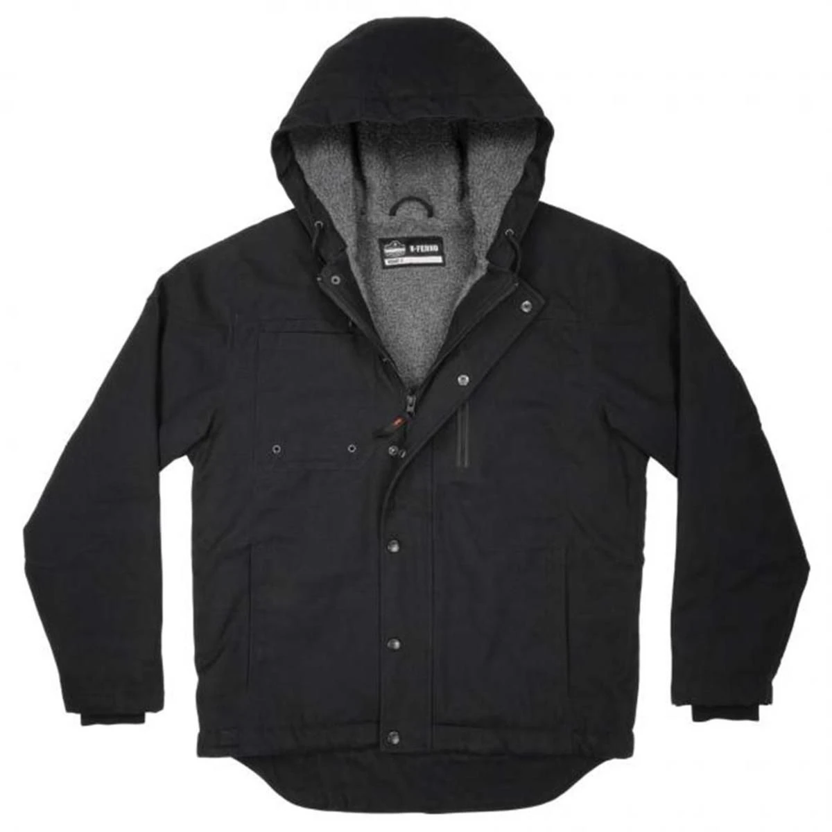The N-Ferno 6468 Heavy-Duty Duck Canvas Work Jacket is a rugged midweight jacket for warmth in cool conditions. The cotton duck canvas features a wind- and water-resistant DWR finish for long-lasting durability and dry all-day wear. The body and hood are lined with warm and comfortable sherpa, while the flexible gusseted sleeves feature 40gm quilted insulation for warmth without compromised mobility.