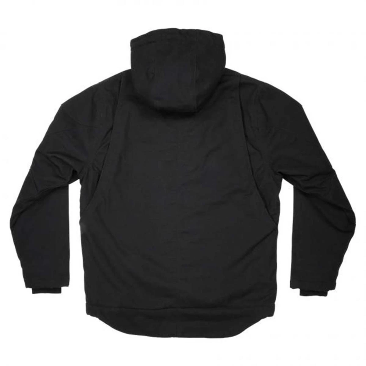 For a snug and custom fit that keeps cold air out, this canvas work jacket features rib knit cuffs, an elastic bungee waist, drawstring hood and a long tail that won’t ride up. Built for the job, the hood is large enough to be pulled up over hard hats. A zippered closure with snap buttons makes for easy on and off.