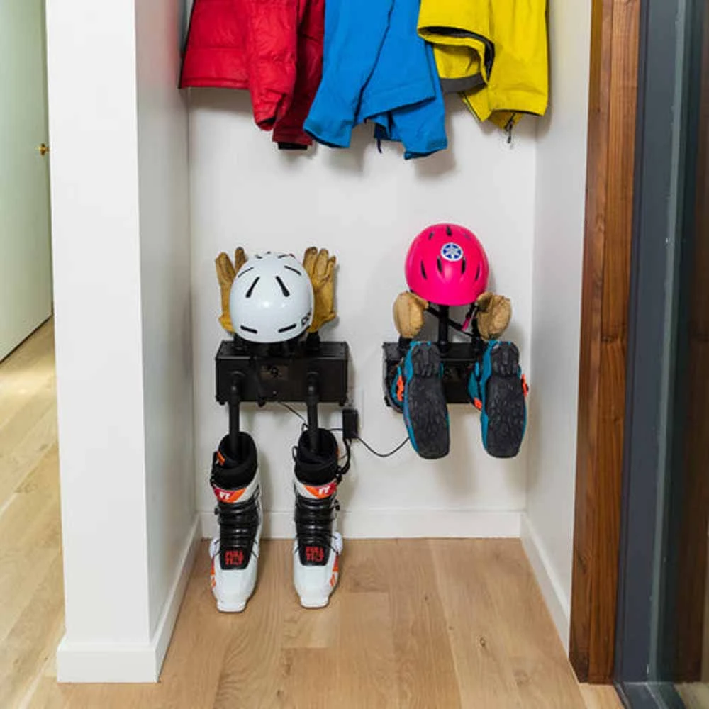 Dry up to 5 different items at once at home or in your vehicle, and say goodbye to wet gear. Configure your 5 Twist-and-Lock ports to accommodate any type of wet or sweaty gear, select a fan setting from Low, Medium or High, and let the Solo do its work. Leaving wet gear overnight is a guarantee for odor and increased wear, and the Solo not only makes for better days, it also increases the lifespan of the gear that you rely on for work and play. The garage and mud-room friendly aesthetic increases both form and function of your storage space, and the added mobility of the 12-volt car jack doubles down on the Solo’s utility. From waders, to hockey gear, to work boots, to ski and snowboard boots, to helmets of all kinds, to cleats, to gloves, to jackets and more, the Solo is the dynamic solution for keeping your gear dry, clean, and performing up to expectations.