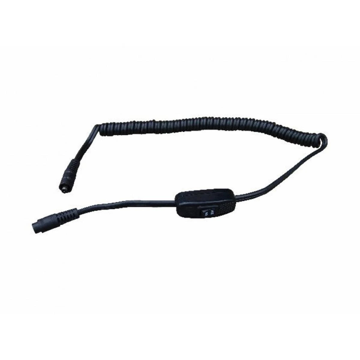 - Connect male coax connector of the switch cord to the female coax connector of the battery cord then connect the female coax connector of the switch cord to your heated clothing