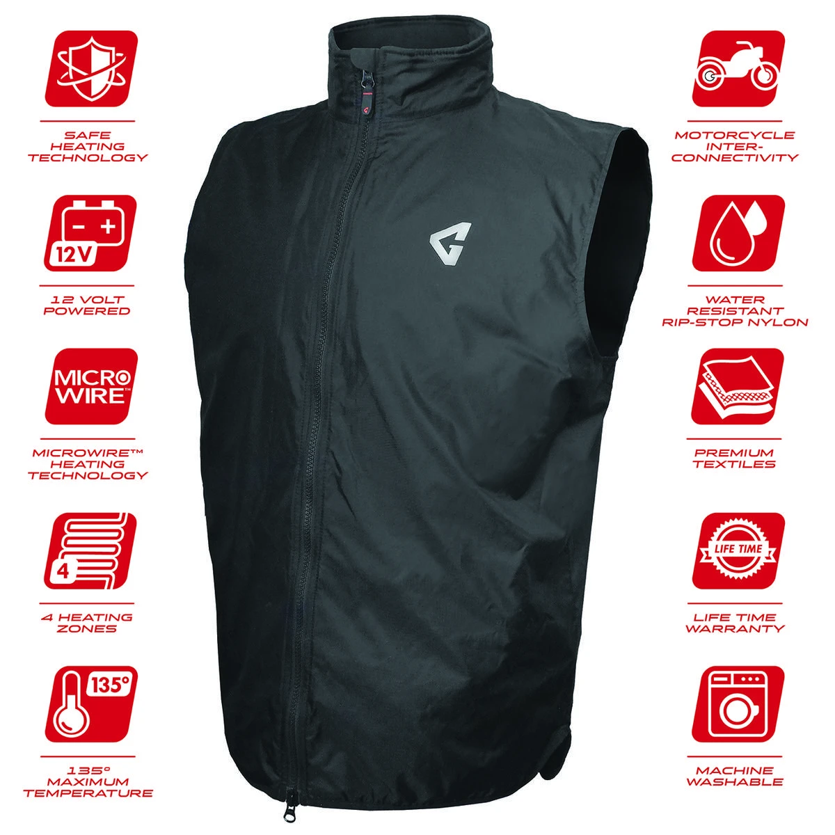 This 12V heated vest liner packs a powerful punch in a very lightweight, easy to stow package. It’s the perfect piece to have with you all the time, just in case Mother Nature throws you an unexpected blast of cold! While not quite as warm as the full jacket liner, it’s perfect to throw on under your leather or textile jacket for early morning starts, or cool evening rides. It is designed to be worn close to the body, under your outer jacket and over a thin polyester base layer. This configuration will provide the fastest and warmest heat transfer. The Microwire� heat zones come to full temperature in seconds.