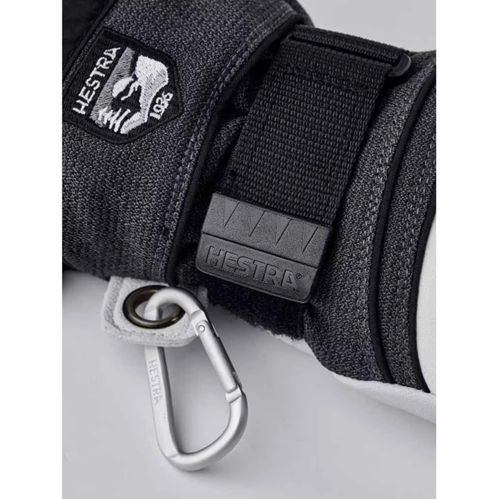 Long and sturdy coach glove developed in close cooperation with the coaches of the Swedish and Norwegian national alpine teams. A five-finger work glove for long days outdoors in all kinds of weather, as well as withstanding heavy wear and tear from handling sticks and other equipment.The outer glove is made from durable goatskin combined with two different synthetic fabrics for flexibility and comfort. A CZone membrane stops wetness while also wicking away moisture and keeping your hand comfortably dry. The liner is made of polyester fleece with warm synthetic insulation.This model is robust with carefully thought-out details. The leather palm has an Oil tacky coating for extra grip around sticks and the like. The high cuff has a snowlock, and there�s a Velcro adjustment at the wrist. Hestra handcuffs (wrist strap) secure the glove if you take it off to work with just a liner on your hands. Also available in a three-finger model.