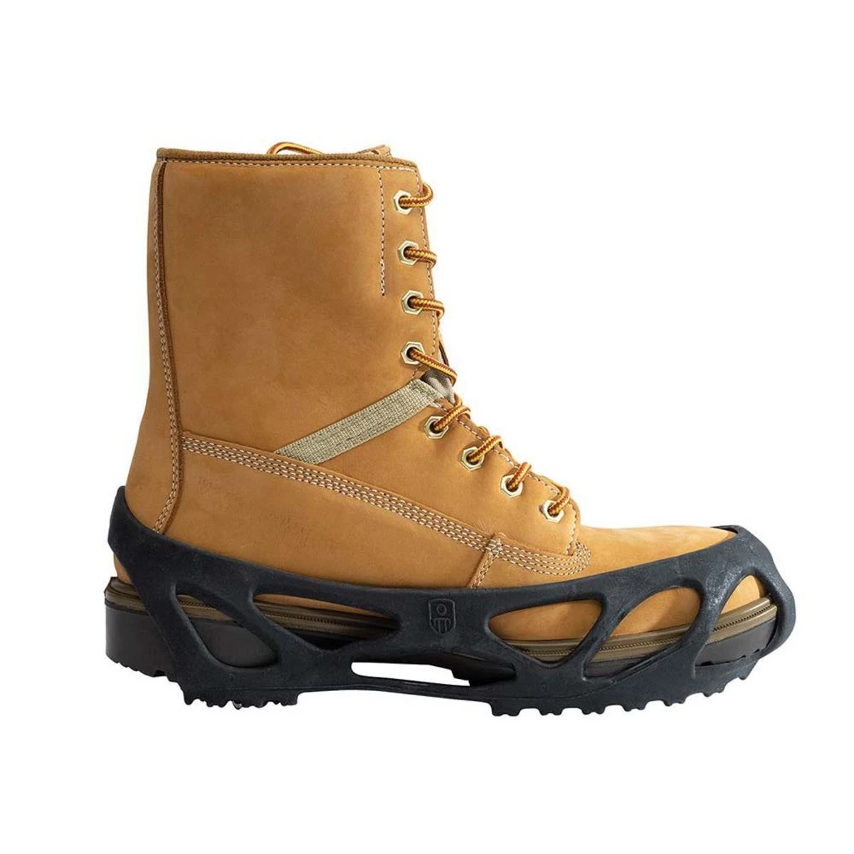 Stride Ice Cleats are made of TPE that performs to -45 degrees. Deep toe and heel pockets designed for steel toe footwear. Extremely durable. Fits securely to your shoes or boots. Multi-directional traction plates bite into ice and snow.