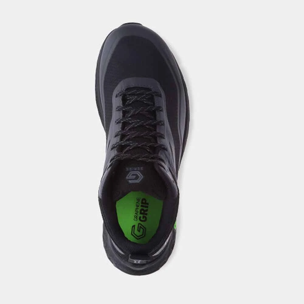 Graphene-grip rubber ensures the world’s toughest traction over all types of ground, and a durable rip-stop upper, which is combined with a waterproof Gore-Tex membrane, keeps feet dry and comfortable.
