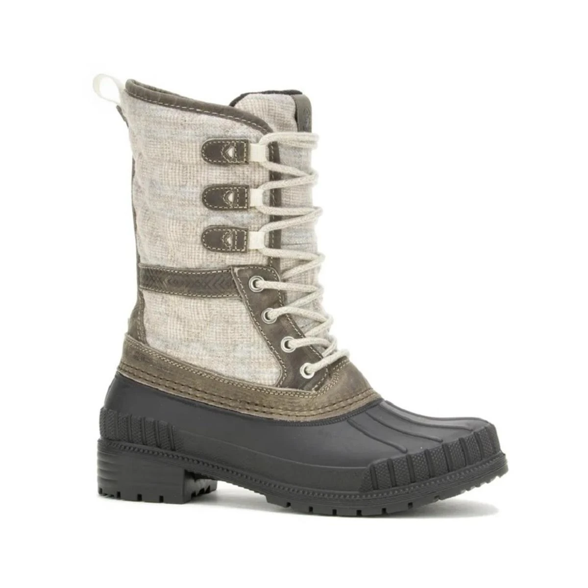 - Combination of waterproof leather and water resistant flannel/knit quilted upper