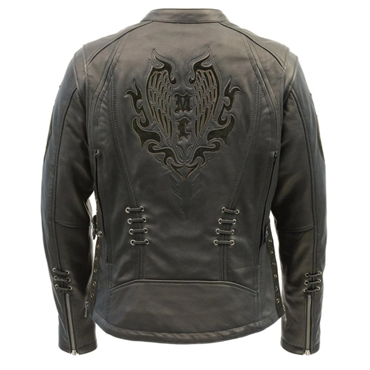 Milwaukee Leather Women’s Lightweight Scuba Racer Jacket with Lace & Grommet Details.