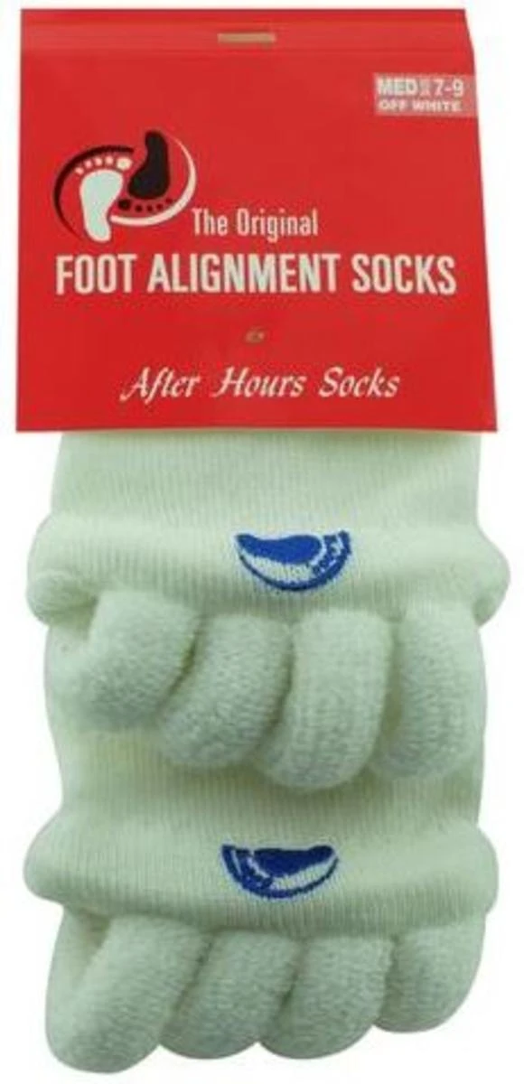 Turn Achy Feet Into Happy Feet! These My Happy Feet Original Foot Alignment Socks are made of a soft cashmere-like acrylic blend. They are lose fitted crew socks that have an open front end with 4 toe separators also made from the same material as the socks body. These separators apply a gentle push on your toes to align your toes with the rest of the foot and position them where they should be and nature intended them to be. The separators are hand made and precisely controlled for width and length. Say good-bye to foot pain! The toe-separators are embroidered to take away the guessing of which sock is the right and the left.Â