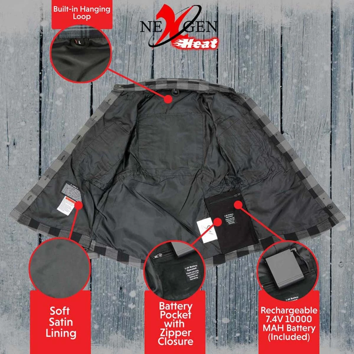 NexGen NXL2601SET Ladies ‘Bonnie’ Black / Grey Heated Flannel Long Sleeve Shirt -Rechargeable Battery Pack Included