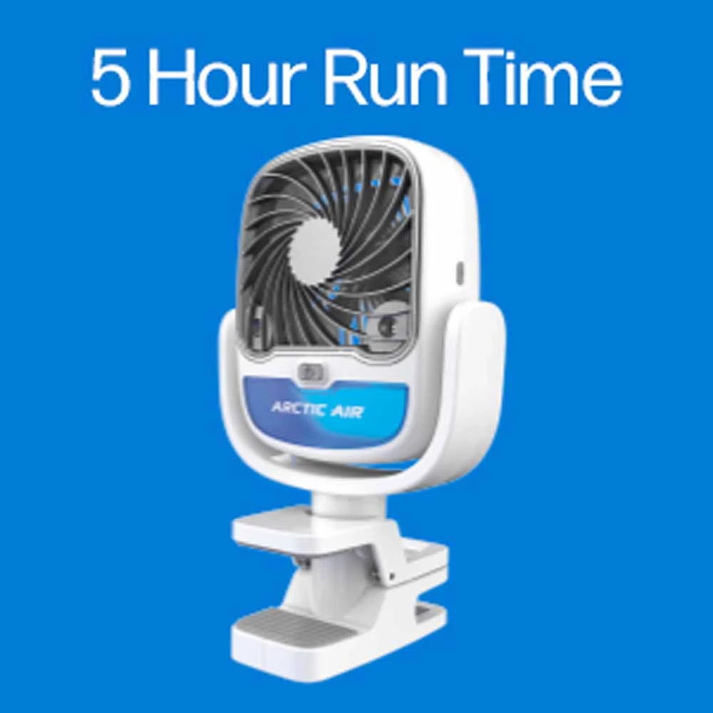 Beat the Heat this Summer! Whether it’s a quiet desk fan at your for your workspace or an outdoor personal fan for a day at the beach, the Arctic Air Grip Go Air Cooler is the perfect choice for you. With its evaporative air cooling, this small fan will bring you relief when it is unbearably hot and dry. Featuring Hydro-Chill Technology along with an evaporative air-cooling cartridge that turns unbearable hot air into cool refreshing air, this mini fan keeps you cool and breezy, no matter where you are! Handy & Convenient. With the 2.5″ universal clamp, you can set up this mini fan almost anywhere. This USB rechargeable portable air cooler has a 5-hour battery life, meaning it is not bound to a wall outlet, and you can take it for camping, a day at the pool, a long drive, and more. It has 3 fan speeds and a 360 degrees swiveling head, allowing you to place it at your convenience. All these features come in a lightweight design with a quiet fan so you can relax or work anywhere in peace. Just fill up its water tank, set the speed, and turn it on!