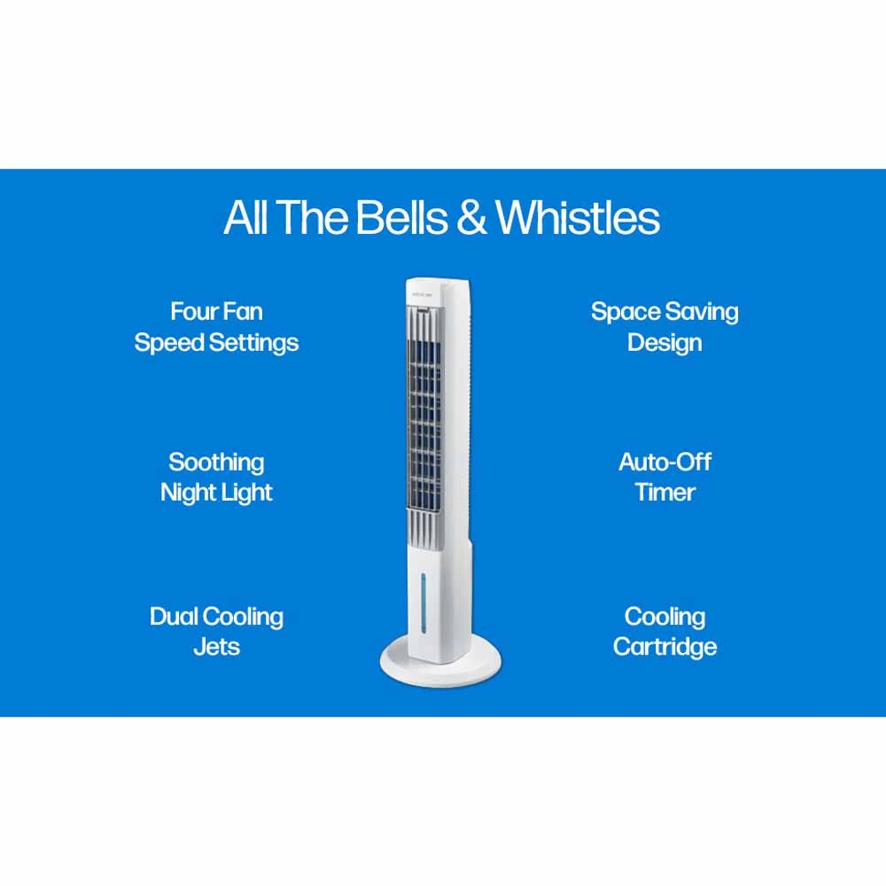 - Powerful Tower Cooler for Large Areas – The Arctic Air Tower+ Evaporative Air Cooler features Hydro-Chill Technology with Mist Boost Mode, six cooling jets, and an evaporative air-cooling filter to turn hot air into cool, refreshing air instantly!