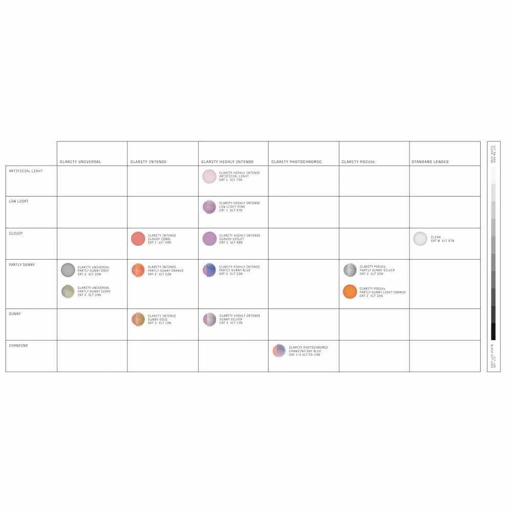 - Interchangeable Lens: It’s easy to swap the Clarity lenses to ensure you have the best vision in the widest range of light conditions.