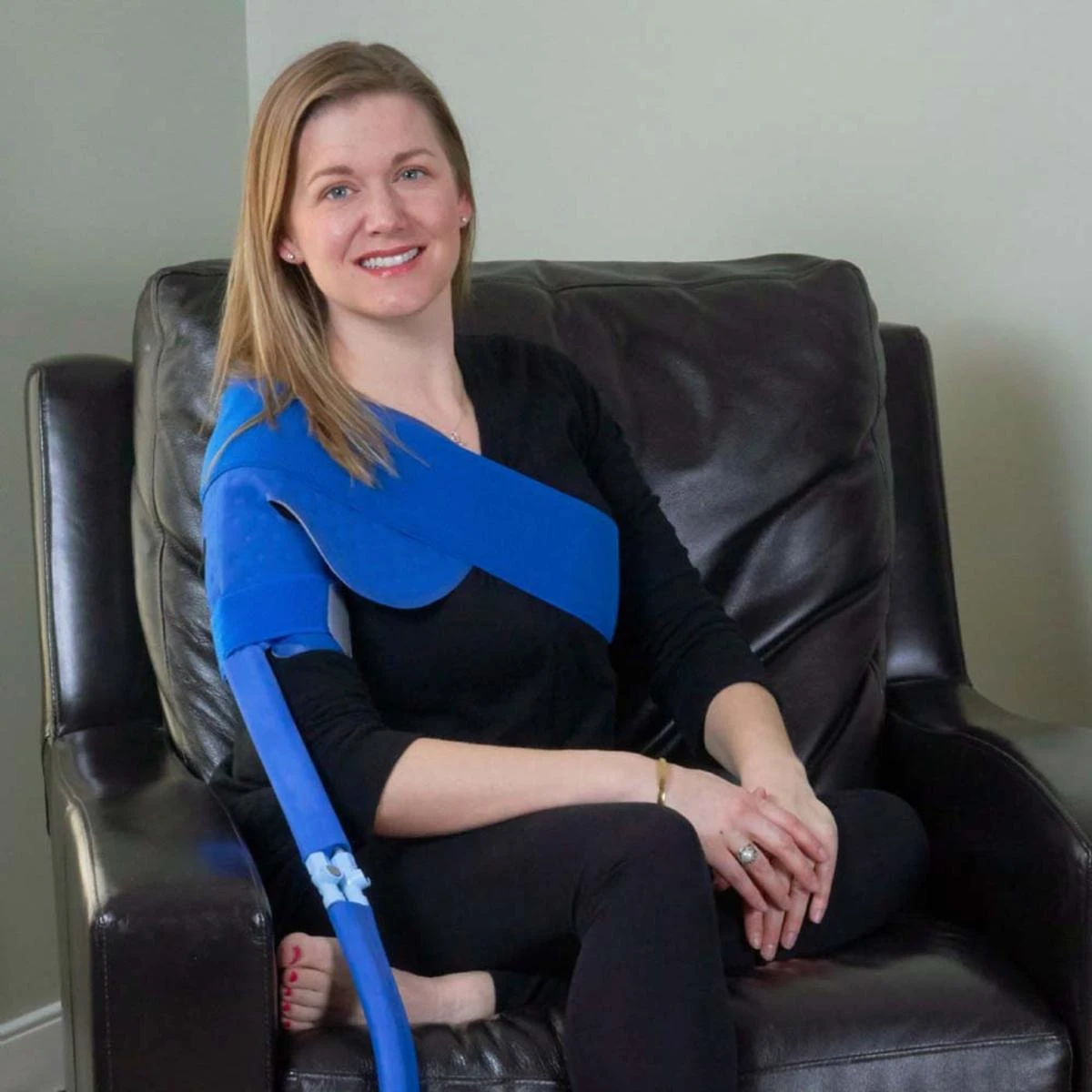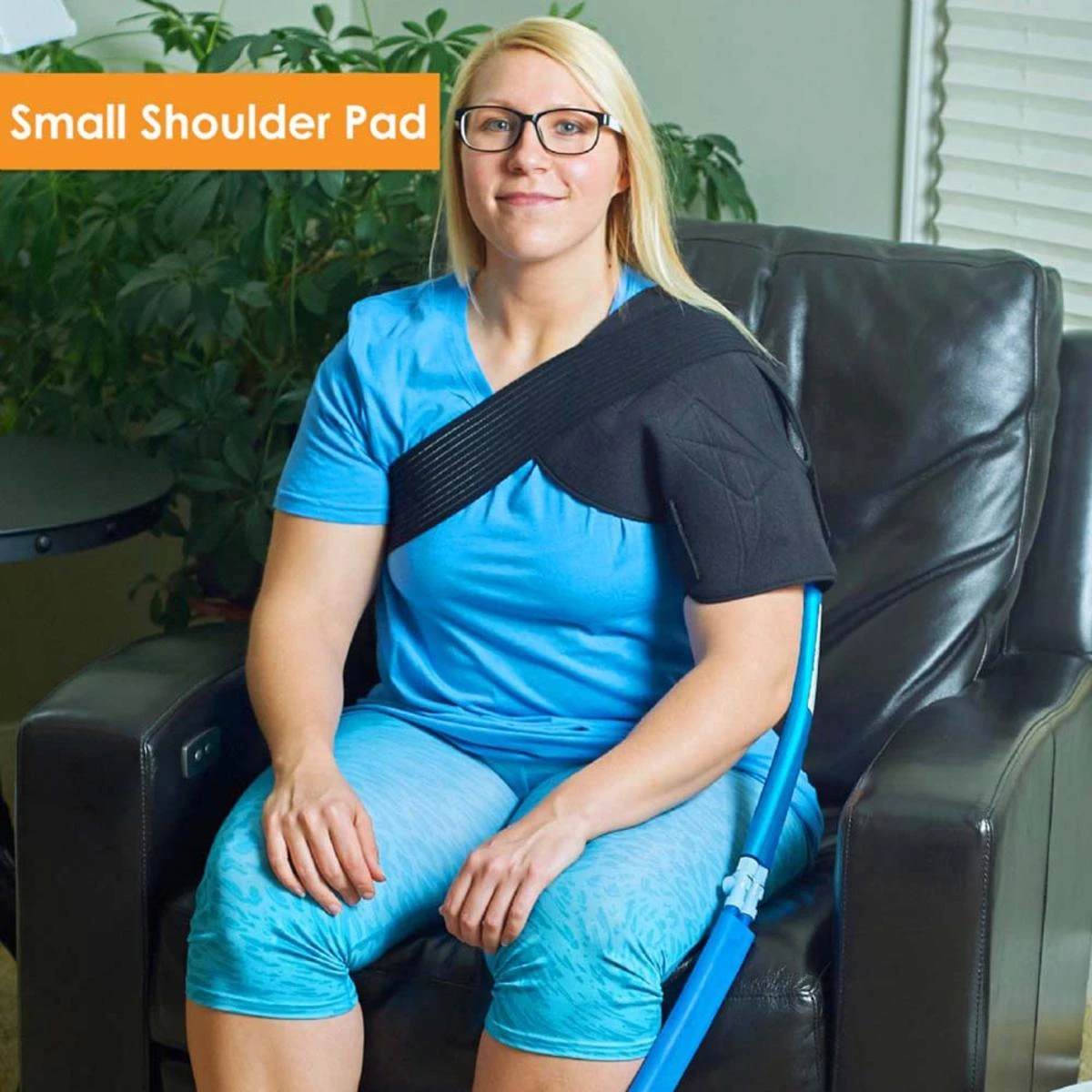 - Three attached elastic straps help secure the Therapy Pad to the shoulder and adjust its fit for your desired comfort level.