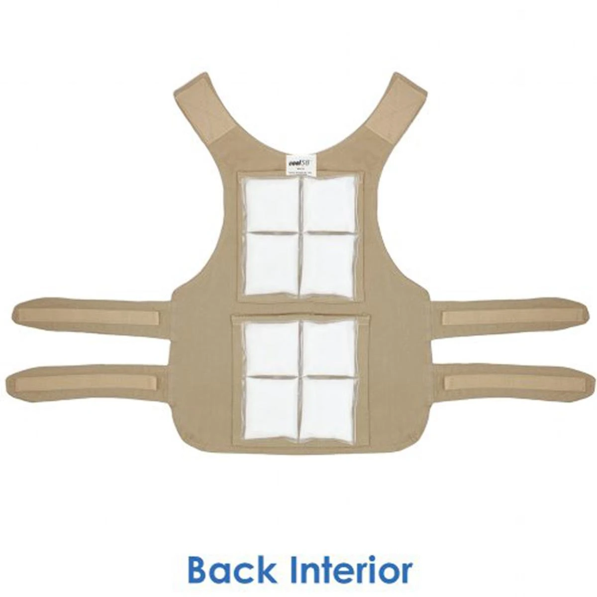 - Cooling packs fit into strategically placed pockets the front and back of the vest for maximum effectiveness.
