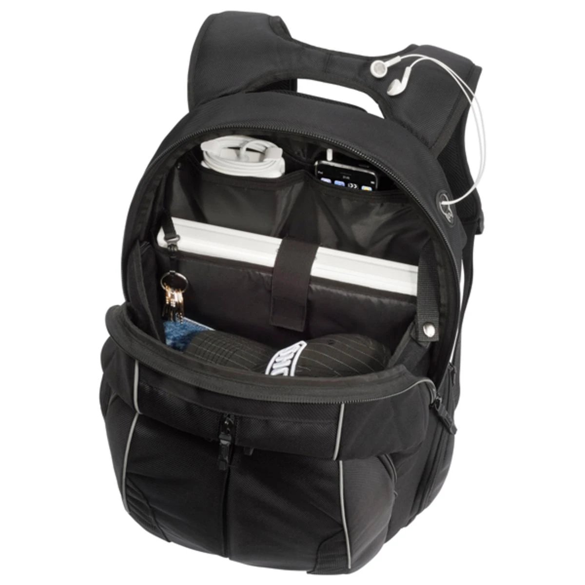 - Interior laptop compartment fits most 17″ laptops/tablets