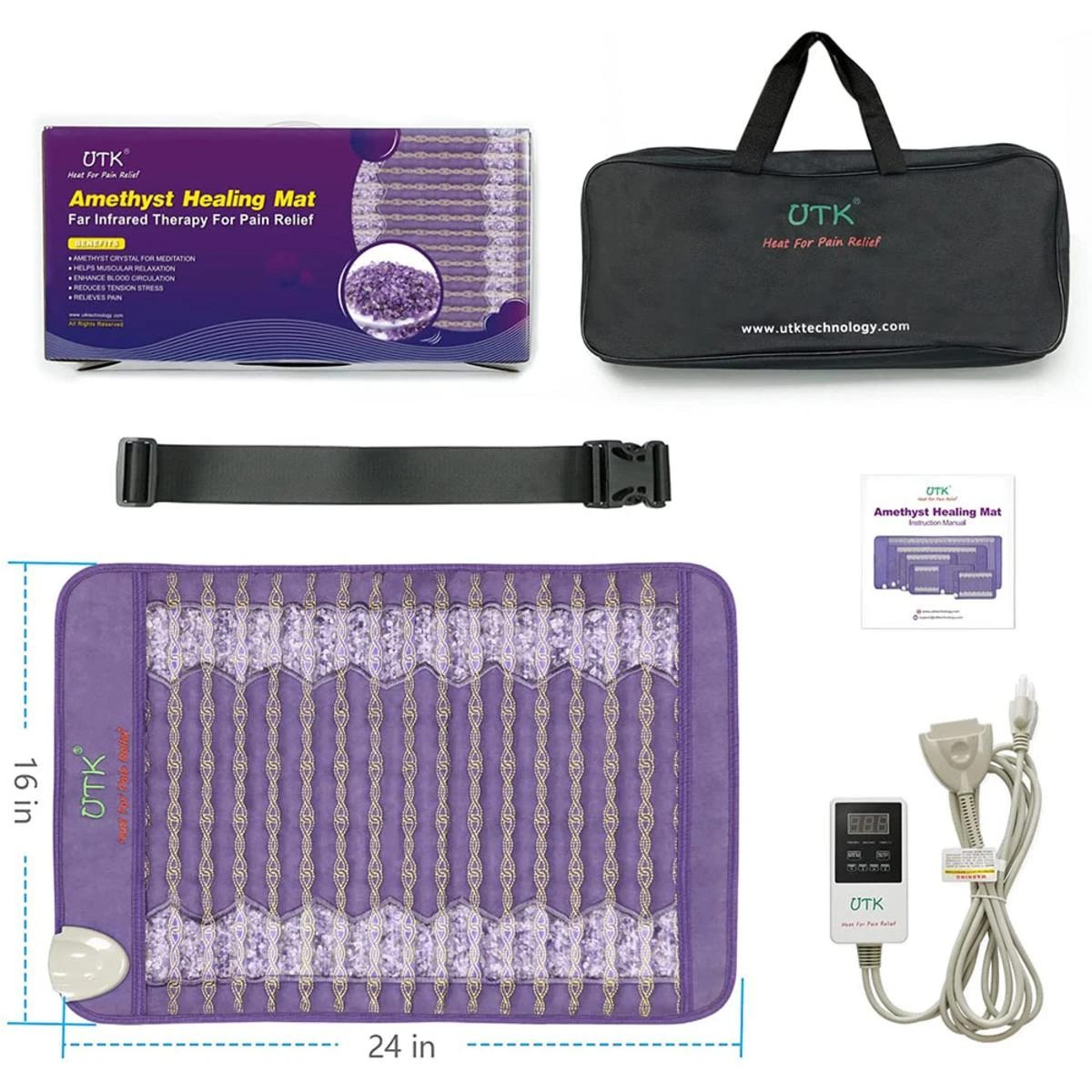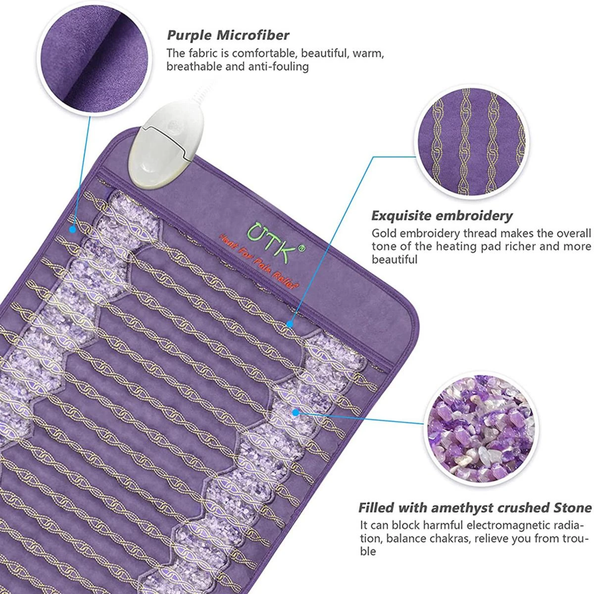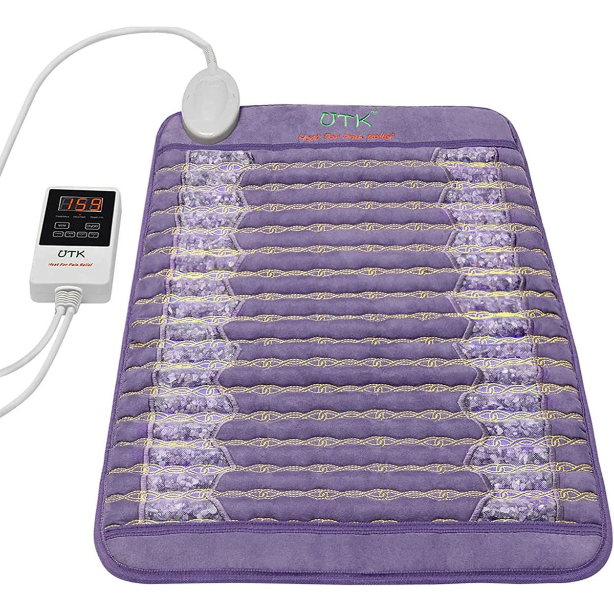 UTK Far Infrared Amethyst Healing Stone Heating Pad for Back Pain Relief, Memory Function, Auto Turn Off, Adjustable Temperature – 23.5″ x 16″