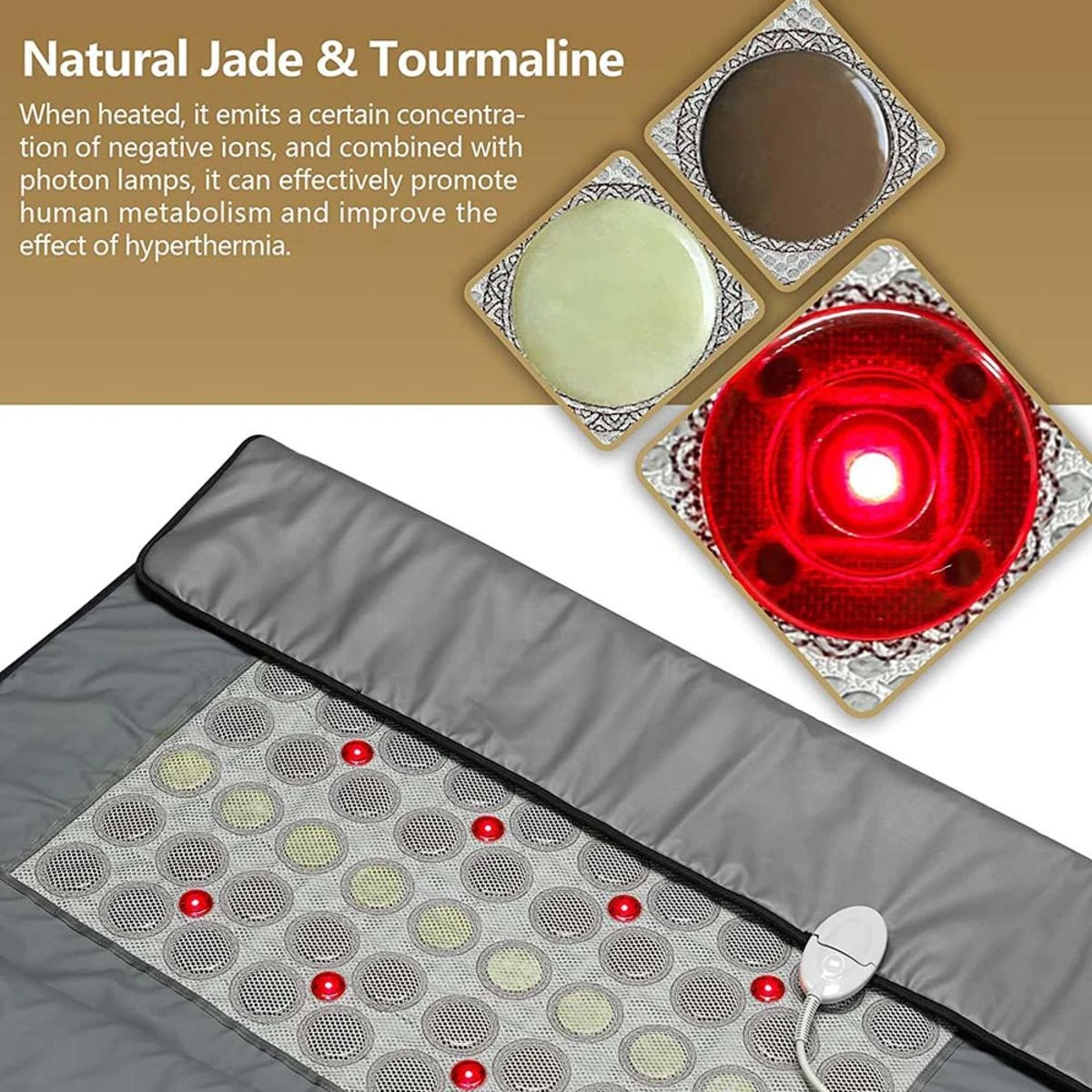 - Upgrade Jade for Effective Pain Relief: Natural jade and tourmaline stones can emit rich negative ions and beneficial trace elements after heating, which help the sauna blanket relieve pain deeply. For muscle soreness, arthritis, chronic pain and etc.
