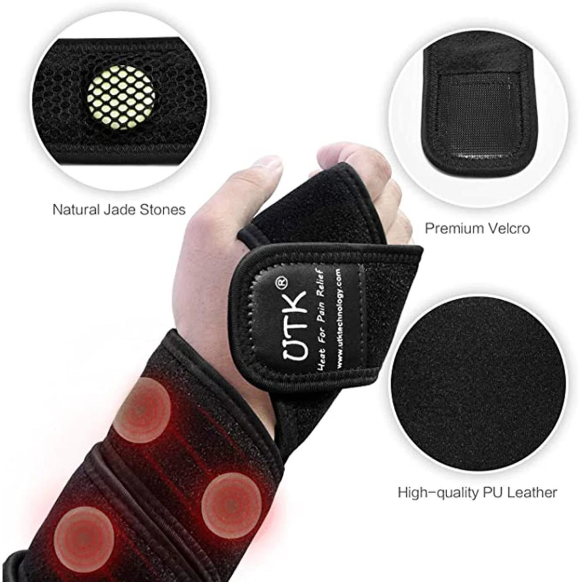 UTK Far Infrared Natural Jade Heating wrap is perfectly soft flexible wrap around a body part to relieve muscle tension where people experience it – lower back & wrist & hip & legs & arms & knee & feet.