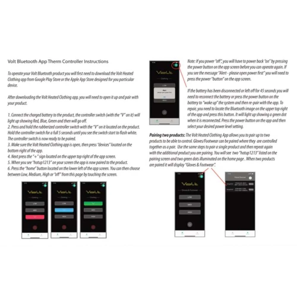 Bluetooth therm controller switch: The Fusion Pants includes a built-in Therm Controller Switch with Bluetooth capability. Either use the simple push button control switch manually to change power level settings or download the Volt Heated Clothing App and control your heat output remotely. This is a great feature for when wearing the vest as a mid-layer under your outer riding jacket wear you can change the power level setting without having to disrobe or fish around for the controller switch.