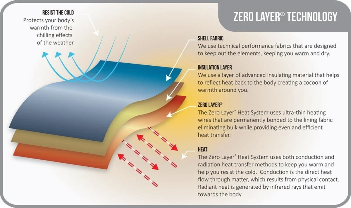- Ultra-thin stainless steel heating wires permanently bonded to the lining fabric